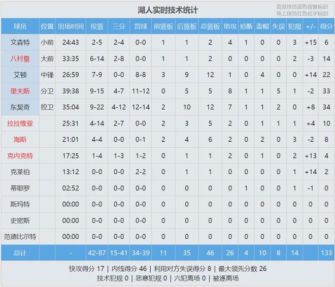 第一节湖人狂轰46分,鹈鹕仅得27分,比赛直接打花了。东契奇单节9投6中,砍下20分6篮板4助攻1抢断1盖帽,正负值+19。这是东契奇生涯第27次单节20+,超越詹姆斯(26次),排名NBA历史第六(1996-97赛季开始统计)。